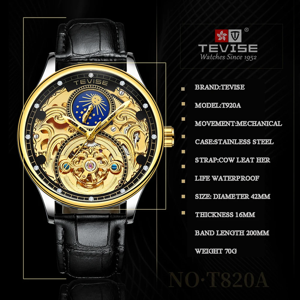 Product Name: Tevise automatyczne zegarki zegarki mechaniczne dla mężczyzn Hollow szkielet samonakręcający mężczyzna luksusowej marki Sport Wrist Watch Relogio Masculino