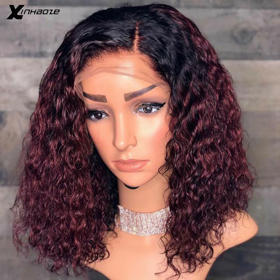 Product Name: Brazylijski mokre faliste koronki przodu peruki z ludzkich włosów Ombre #1bT30 Remy włosy Glueless PrePlucked Ombre bordowy koronkowa peruka na przód dziecko włosy