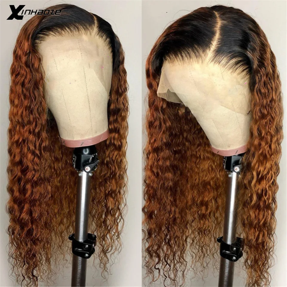 Special Offer Brazylijski mokre faliste koronki przodu peruki z ludzkich włosów Ombre #1bT30 Remy włosy Glueless PrePlucked Ombre bordowy koronkowa peruka na przód dziecko włosy Discount 51% Today!