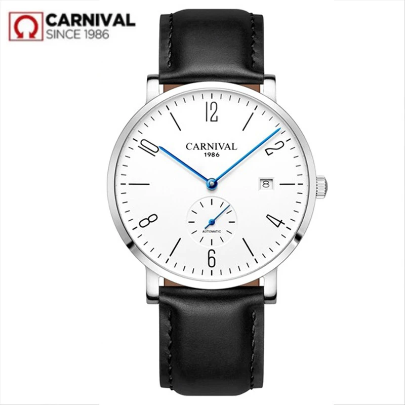 Special Offer Karnawał automatyczny zegarek mechaniczny mężczyźni luksusowa marka pełna stal biznes mężczyźni zegarki skóra cielęca moda Casual data zegary Discount 55% Today!