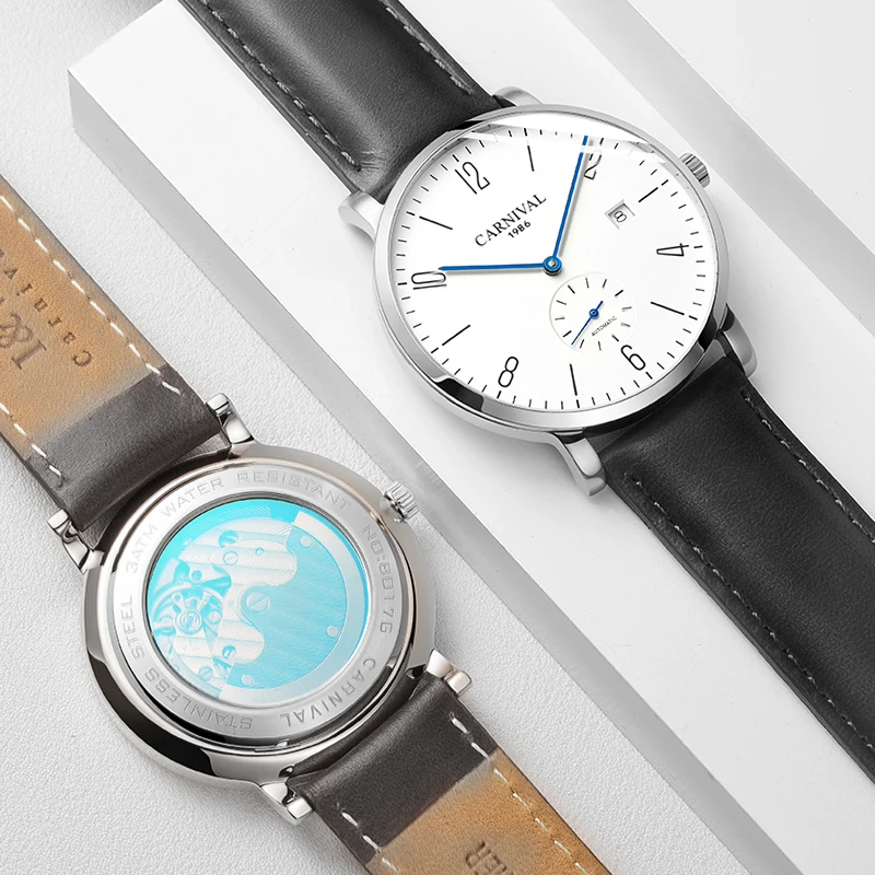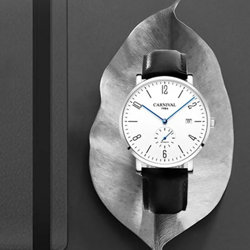 Product Name: Karnawał automatyczny zegarek mechaniczny mężczyźni luksusowa marka pełna stal biznes mężczyźni zegarki skóra cielęca moda Casual data zegary