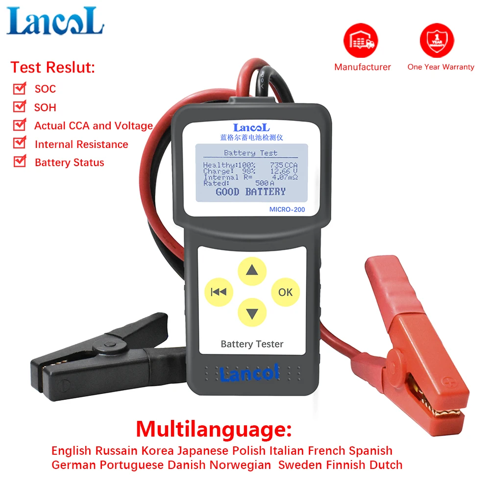 Special Offer Fabryka Lancol 200 z samochodem akumulator samochodowy narzędzia dla samochodów analizator baterii Tester kable rozruchowe żywotność baterii wielojęzyczne Discount 7% Today!