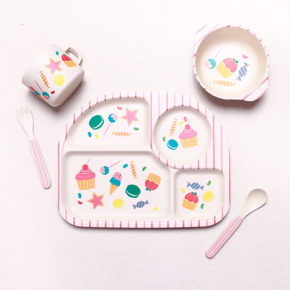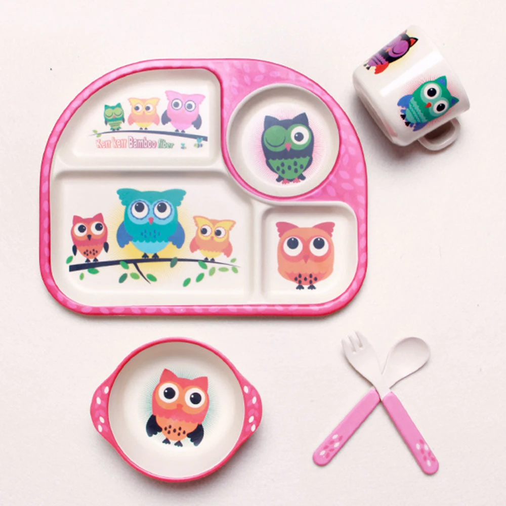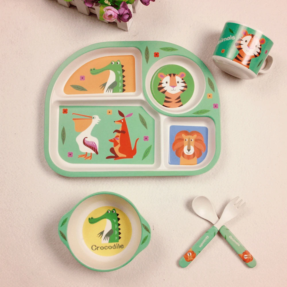Special Offer 5 sztuk zestaw Baby Bamboo fibre miski Cute Cartoon ekologiczne naczynia dla dzieci naturalny zestaw stołowy separacja talerz do karmienia Discount 40% Today!