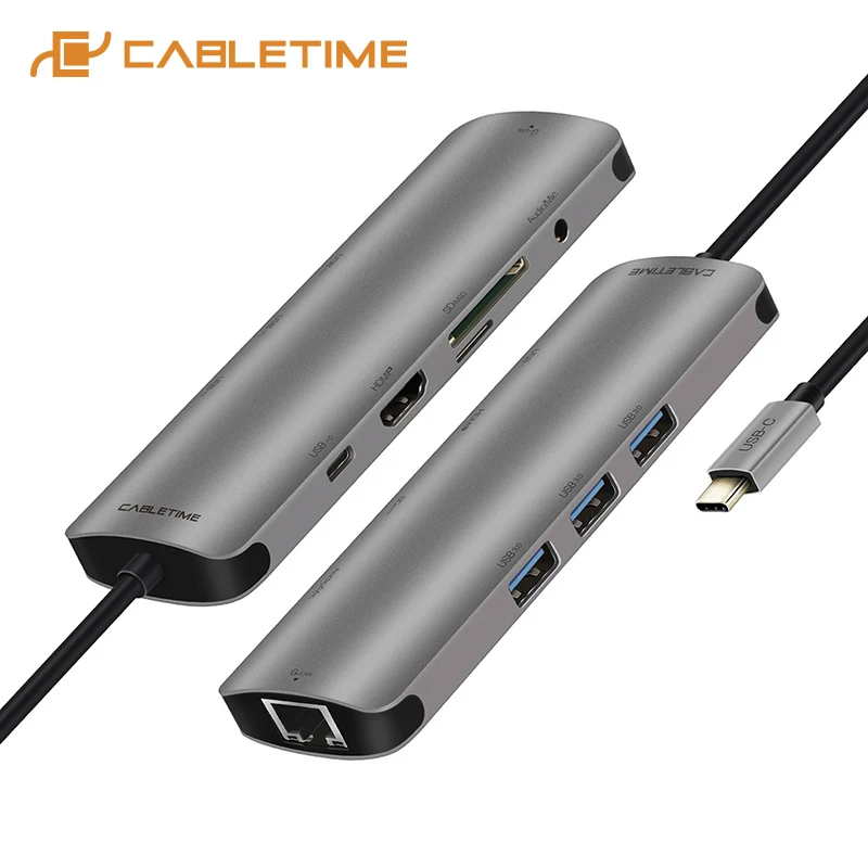 Product Name: CABLETIME wielu HUB USB C do USB 3.0 adapter hdmi AUX sieci Lan Hub do macbooka powietrza Matebook X 13 typu C HUB C042