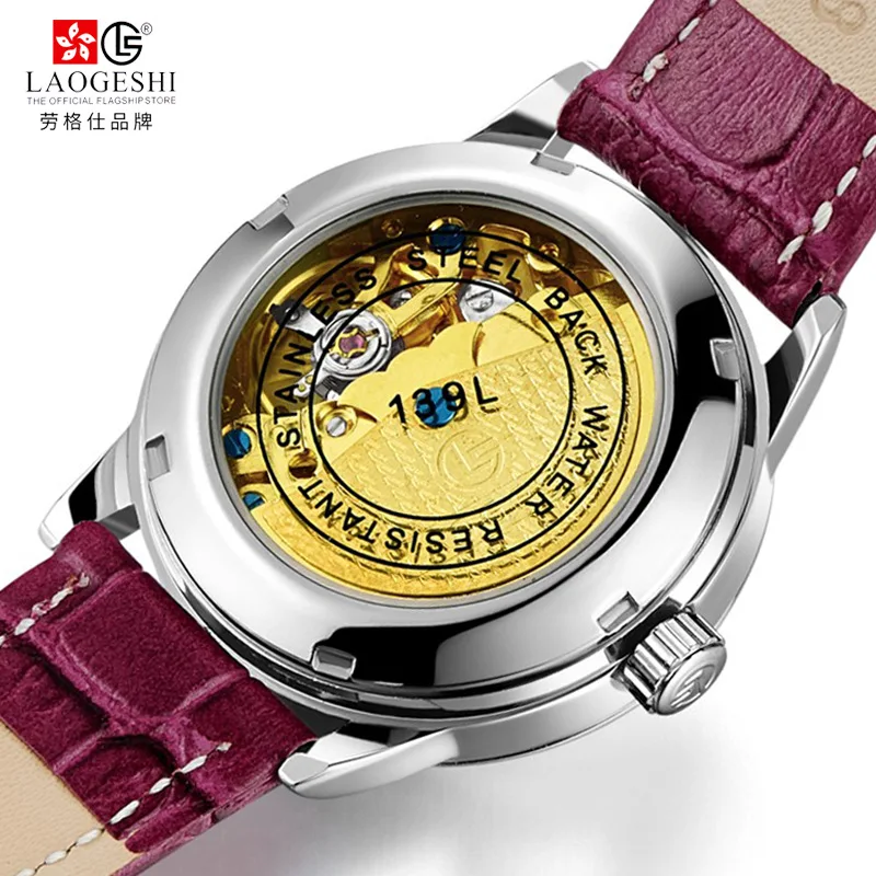 Special Offer Kobiety automatyczne mechaniczne zegarki diament czterolistny liść koniczyny zegarki damskie różowe skórzane zegarki wodoodporne Senhoras Assistir Discount 50% Today!