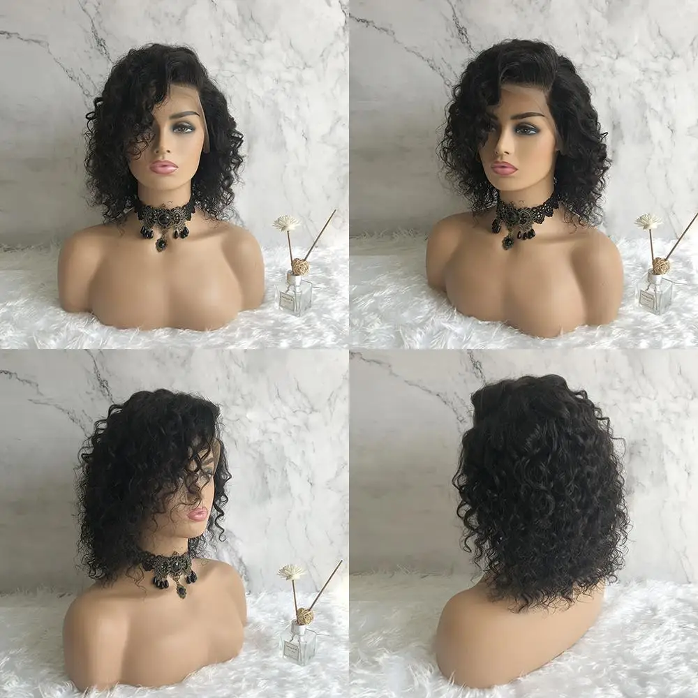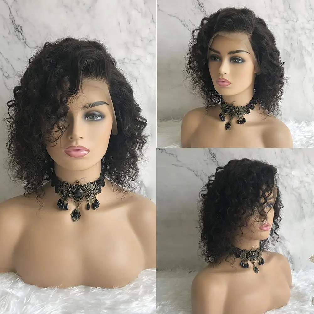 Special Offer Fałszywe skóry głowy peruka 13x6 peruka krótka naturalne włosy hinduskie kręcone koronki przodu włosów ludzkich peruk wstępnie oskubane z dzieckiem włosy peruki dla kobiet Bob peruka Discount 51% Today!