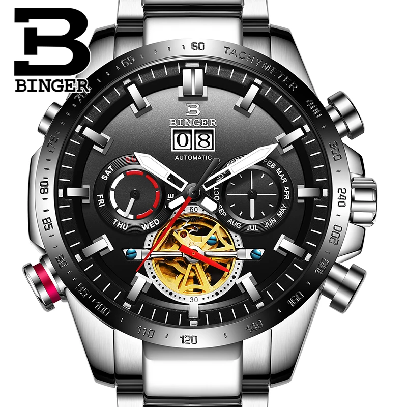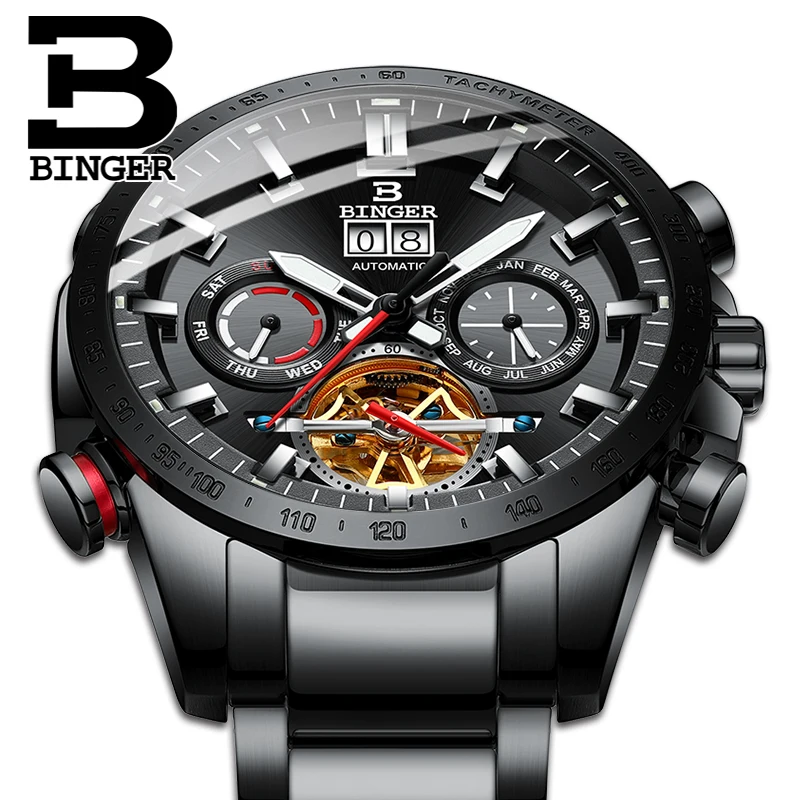 Product Name: Oryginalna luksusowe szwajcaria marka BINGER mężczyźni automatyczne mechaniczne świecenia wodoodporny fajne pełny pas stalowy mężczyzna mody zegarek