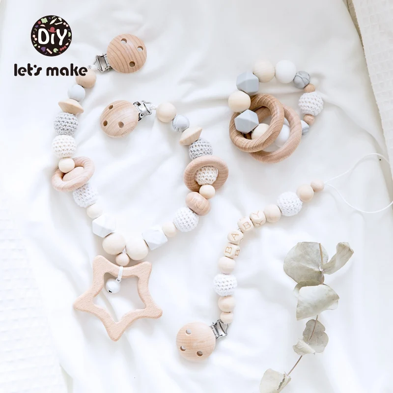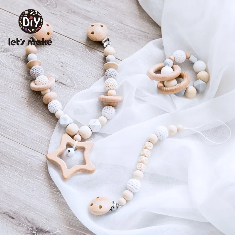 Special Offer Zróbmy grzechotka dla dzieci łańcuszek smoczka smoczek z klipsem bransoletka drewniany pierścień BPA wolna gwiazda trzyczęściowy garnitur drewniane grzechotki dzwonek do łóżka Discount 20% Today!