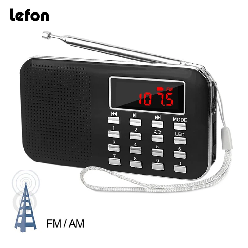 Product Name: Lefon przenośne stereo odbiornik radiowy AM FM MP3 odtwarzacz muzyki wsparcie tf karta sd napęd usb AUX LED latarka z wyświetlaczem Mini radia