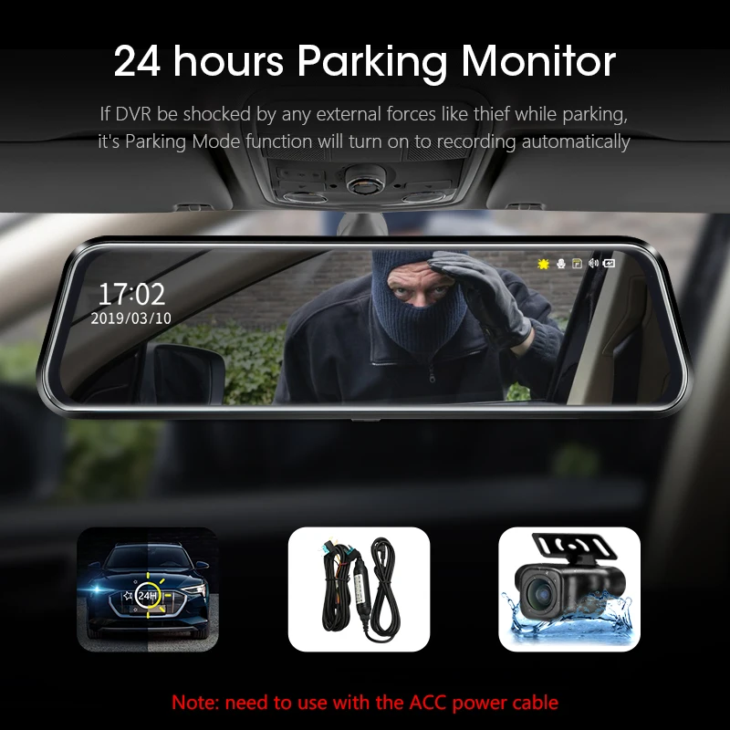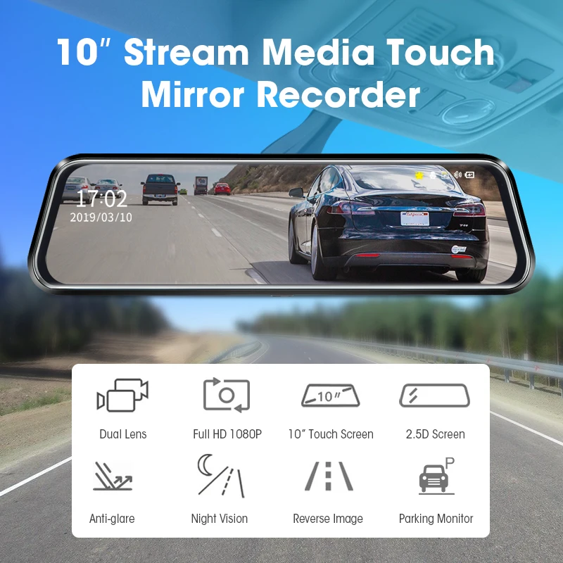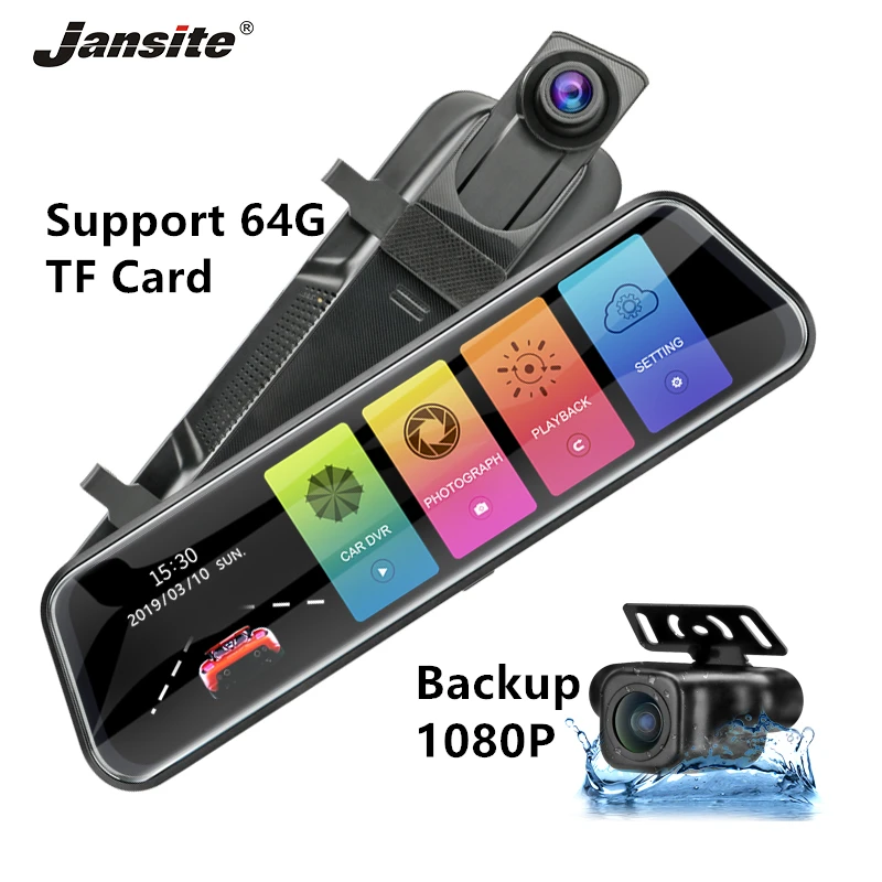 Product Name: Jansite 10 cal lustro 1080P wideorejestrator samochodowy mediów strumieniowych, ekran dotykowy kamera samochodowa kamera na deskę rozdzielczą widok z tyłu kamera monitor do parkowania rejestrator