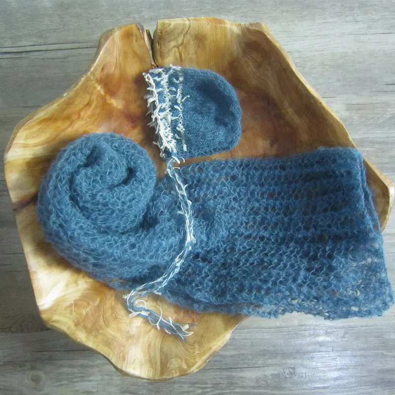 Special Offer Rekwizyty do fotografowania noworodków, ręcznie robione na drutach moherowe na zdjęcie noworodka rekwizyty, miękki koc dla dziecka, okład z pasującym kapeluszem Discount 0% Today!