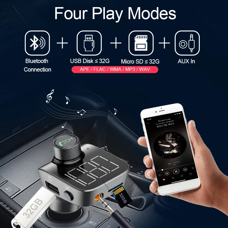 Product Name: CDEN Bluetooth 5.0 AUX odbiornik samochodowy MP3 nadajnik FM odtwarzacza podwójna ładowarka samochodowa USB USB flash napęd karty TF bezstratnej odtwarzanie muzyki