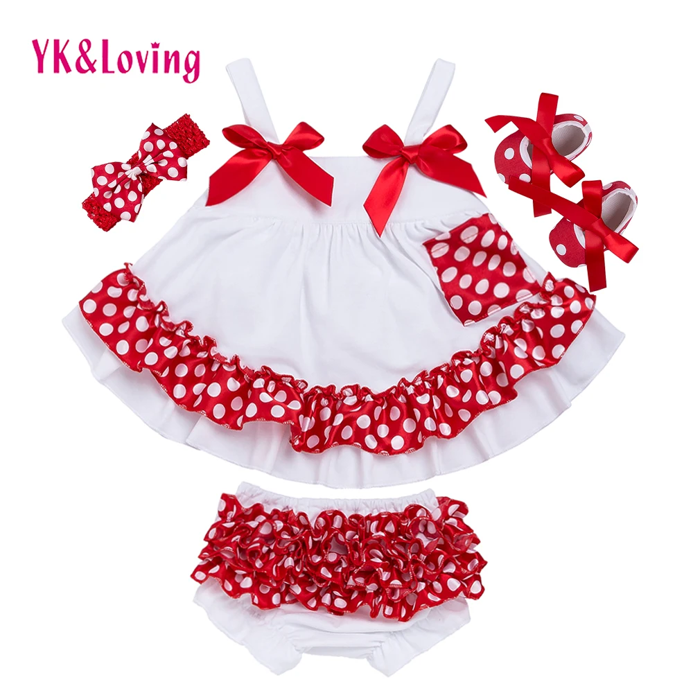 Special Offer Moda dla dzieci dziewczyny huśtawka góry zestaw Polka Dot huśtawka potargane stroje z pasującymi Bloomer opaska ustawia dziewczyna odzież dla niemowląt X006 Discount 19% Today!