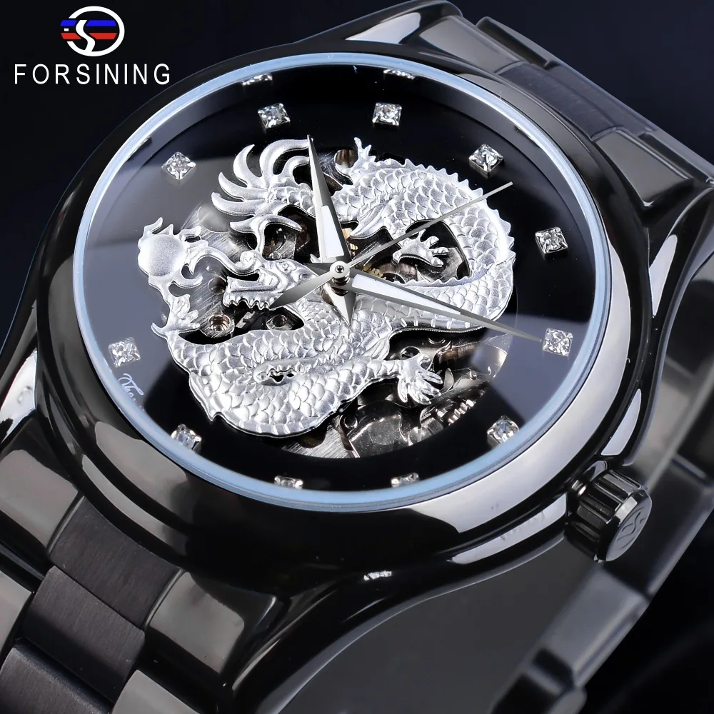 Special Offer Forsining srebrny smok szkielet automatyczne mechaniczne mężczyzna zegarek na rękę pełne ze stali nierdzewnej pasek zegar wodoodporny zegarki męskie Discount 24% Today!