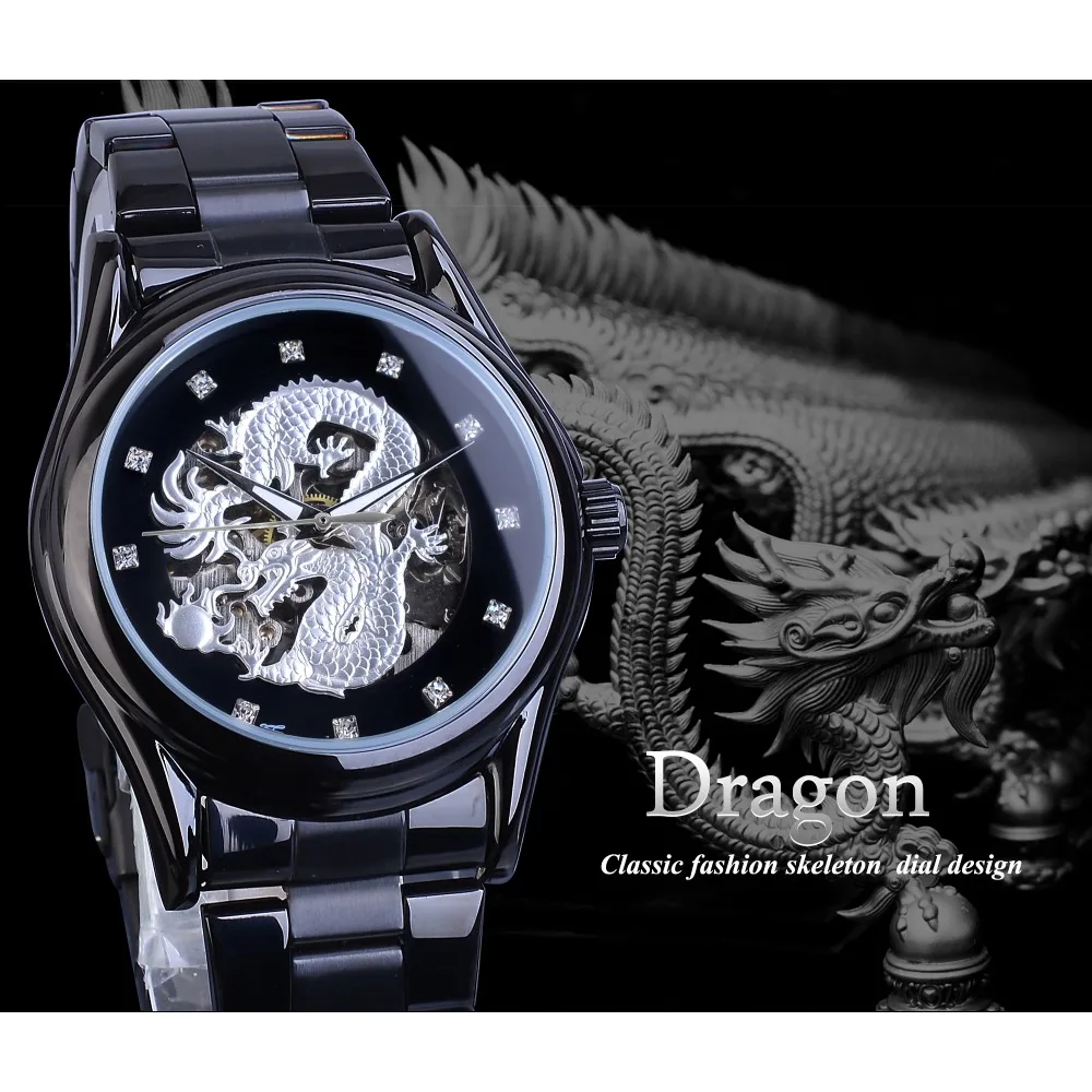 Product Name: Forsining srebrny smok szkielet automatyczne mechaniczne mężczyzna zegarek na rękę pełne ze stali nierdzewnej pasek zegar wodoodporny zegarki męskie