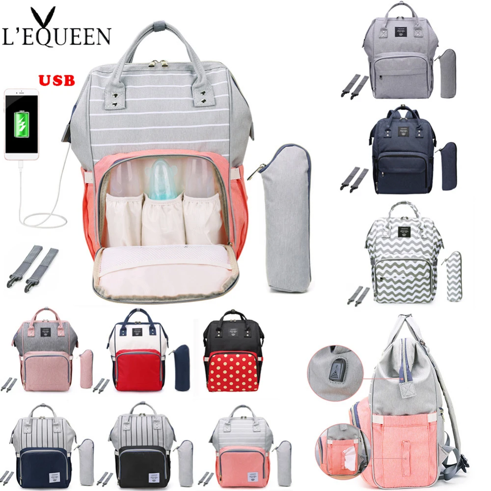 Special Offer LEQUEEN Fashion USB mumia torba na pieluchy macierzyńskie duża pielęgnacja designerski plecak podróżny wózek dziecko torba opieka nad dzieckiem plecak na pieluchy Discount 29% Today!