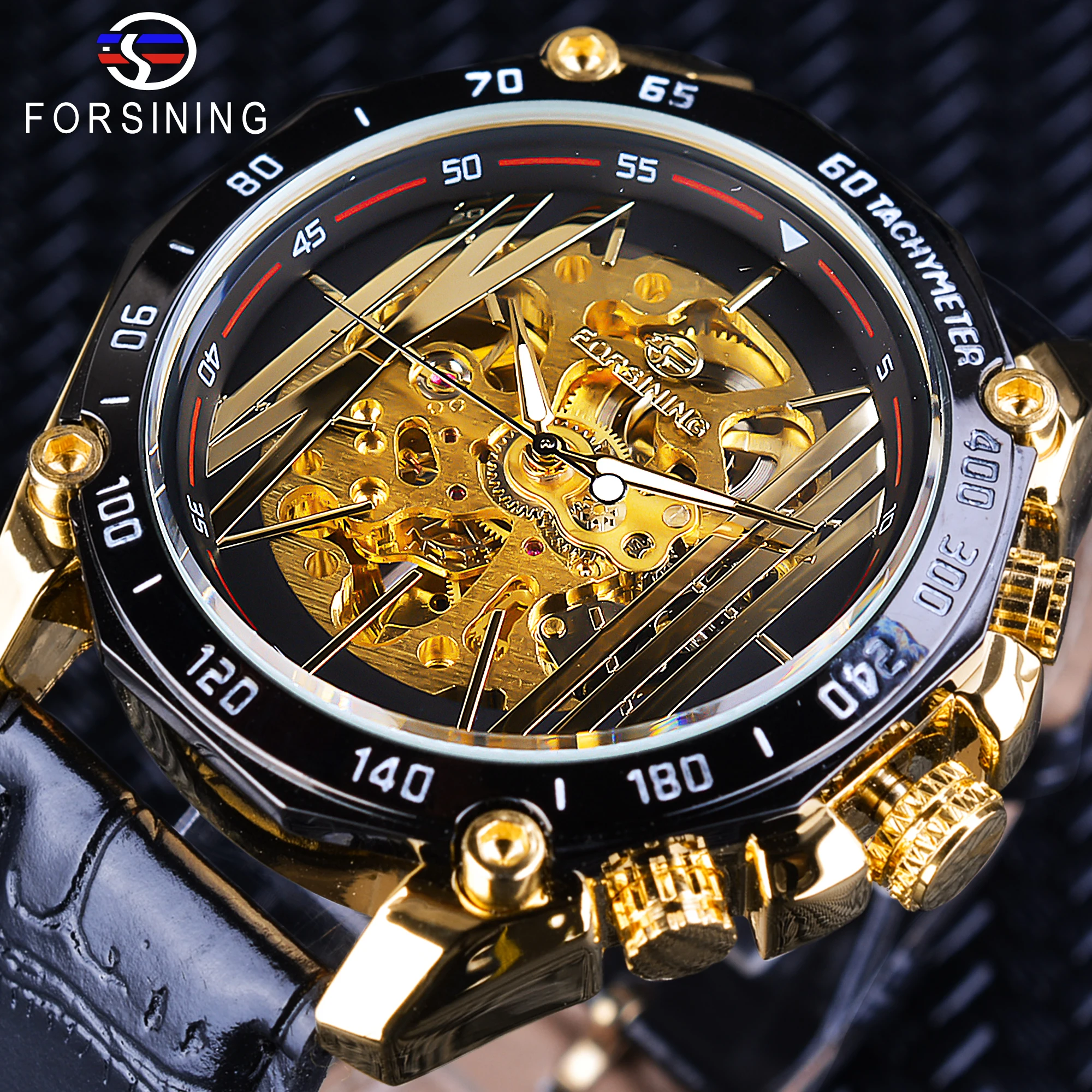 Special Offer Forsining duża tarcza Steampunk projekt luksusowe złoty biegów ruch mężczyźni kreatywny ażurowe zegarki automatyczne mechaniczne zegarki na rękę Discount 35% Today!