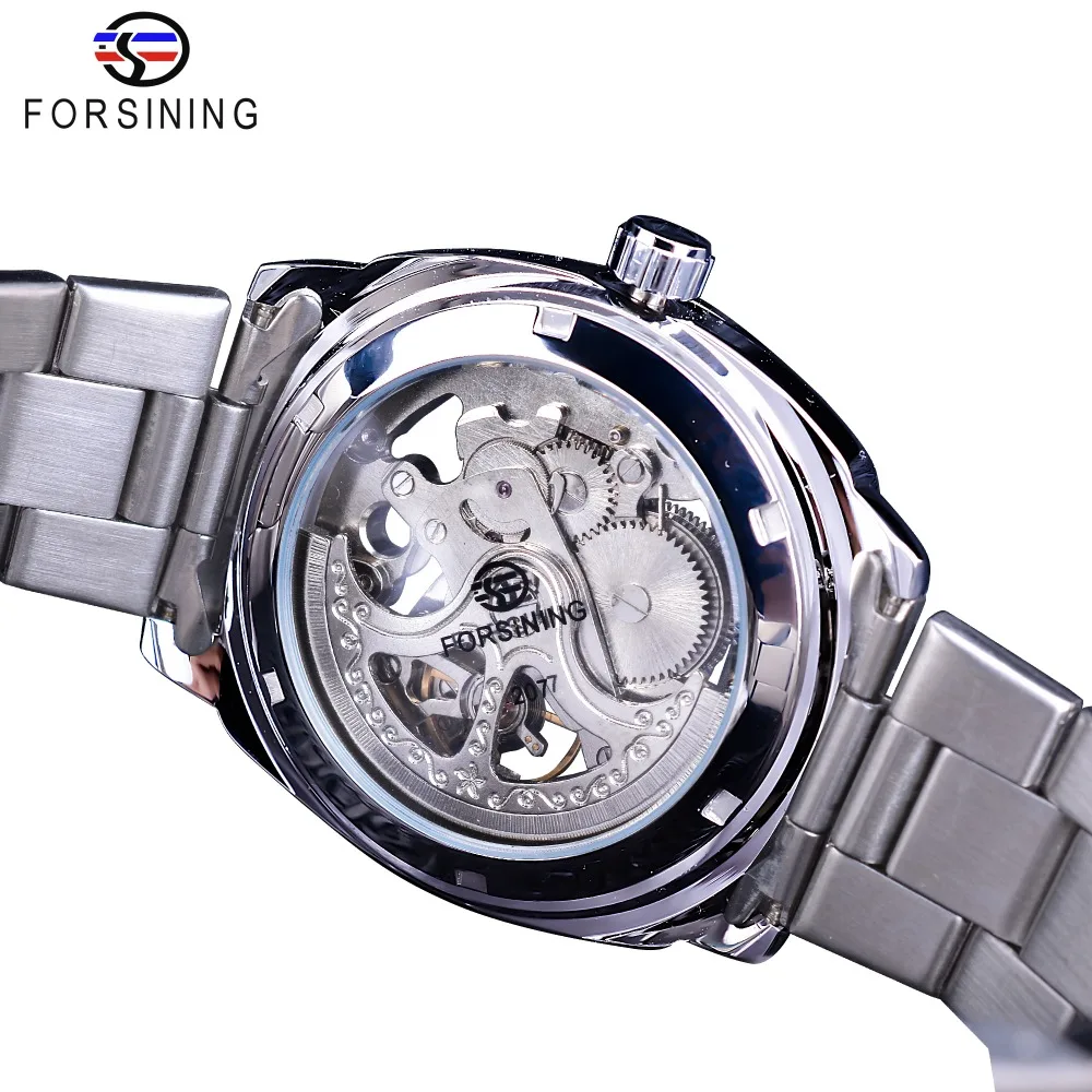 Product Name: Forsining srebrne zegarki składane zapięcie z bezpieczeństwem męskie zegarki automatyczne Top marka luksusowe przezroczyste zegarki Luminous Hands