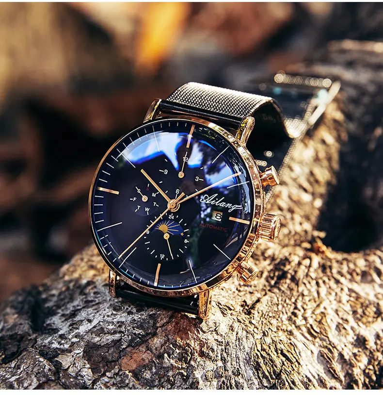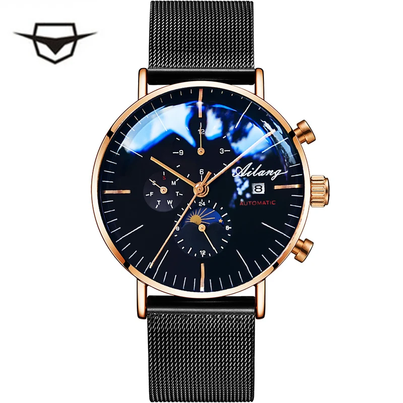 Special Offer AILANG męska mechaniczne automatyczne moda Top marka Sport Watch Tourbillon Moon Phase zegarek ze stali nierdzewnej mężczyzna zegar Discount 43% Today!