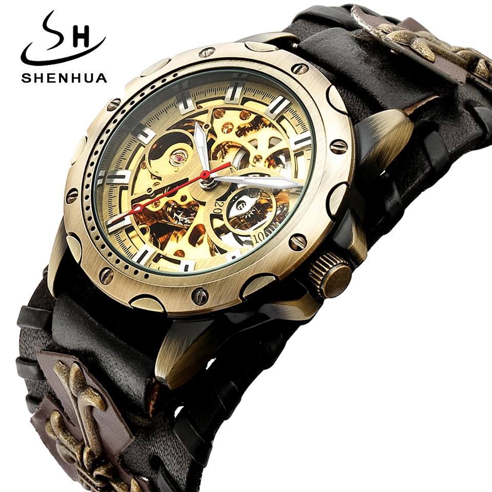 Product Name: SHENHUA Retro Gothic brąz szkielet automatyczne zegarek mechaniczny mężczyźni Steampunk własna Winding zegar Tourbillon zegarek Reloj Hombre