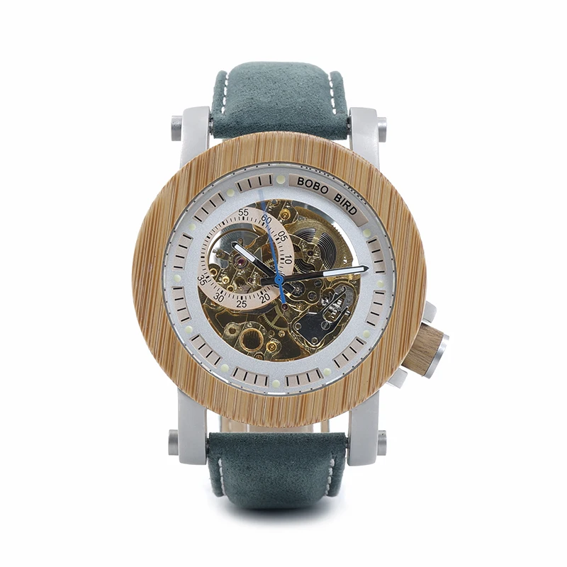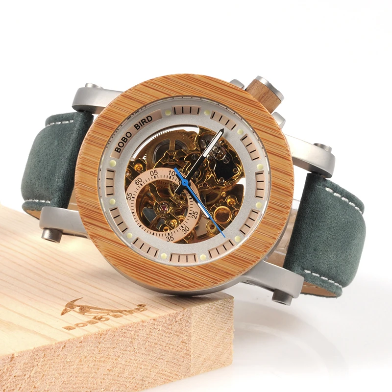 Product Name: BOBO ptak WK13 bambusa Mechanica zegarek rocznika brązu szkielet zegar mężczyzna antyczne Steampunk dorywczo automatyczne granatowy zespół Homme