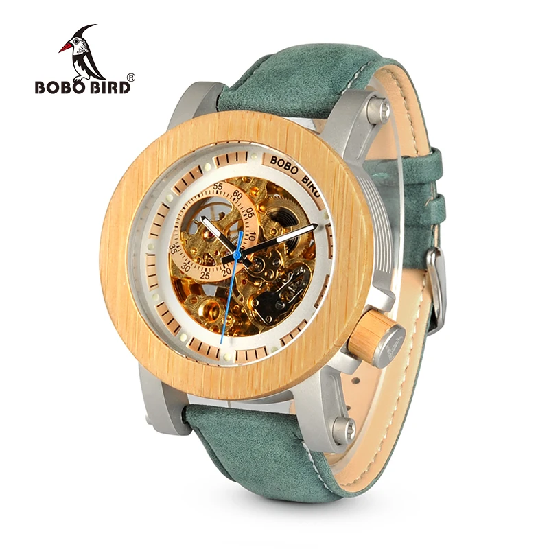 Special Offer BOBO ptak WK13 bambusa Mechanica zegarek rocznika brązu szkielet zegar mężczyzna antyczne Steampunk dorywczo automatyczne granatowy zespół Homme Discount 47% Today!
