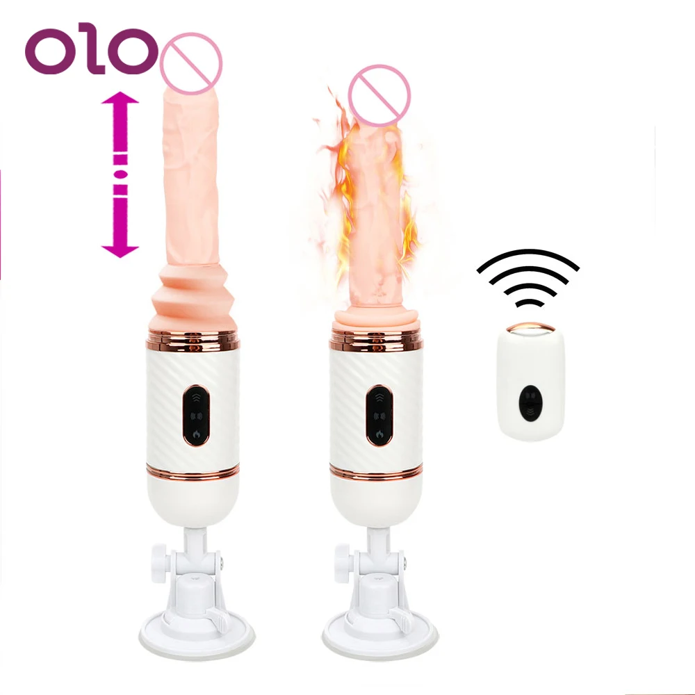 Special Offer OLO podgrzewane teleskopowe wibratory w formie sztucznego członka bezprzewodowy pilot sztuczny penis automatyczny Sex Machine przyssawka zabawki erotyczne dla kobiet Discount 24% Today!