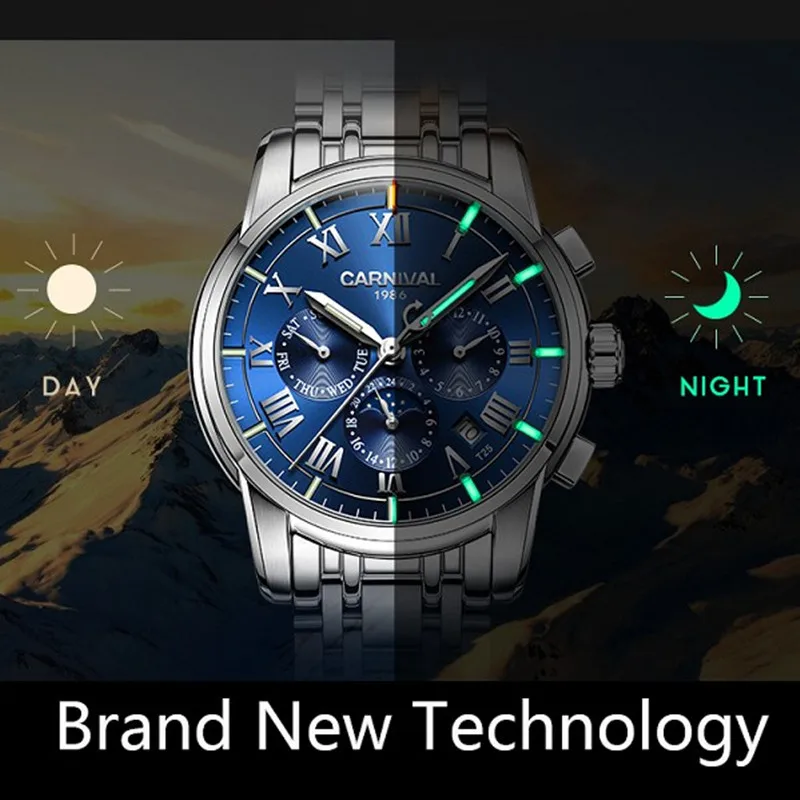 Product Name: Karnawał T25 tryt świecenia zegarek mechaniczny mężczyźni zegarki 2019 luksusowa marka kalendarz zegarek automatyczny człowiek Relojes Hombre