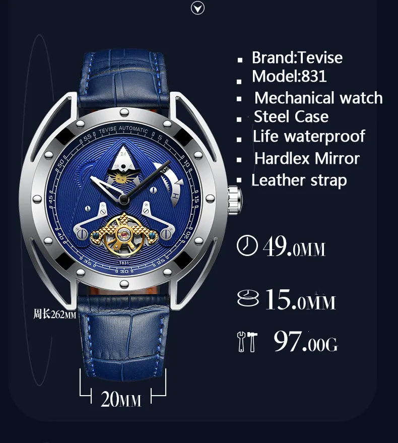 Product Name: Tevise męskie automatyczne mechaniczne zegarki wodoodporne Tourbillon sport samonakręcający Top marka męski zegarek Relogio Masculino