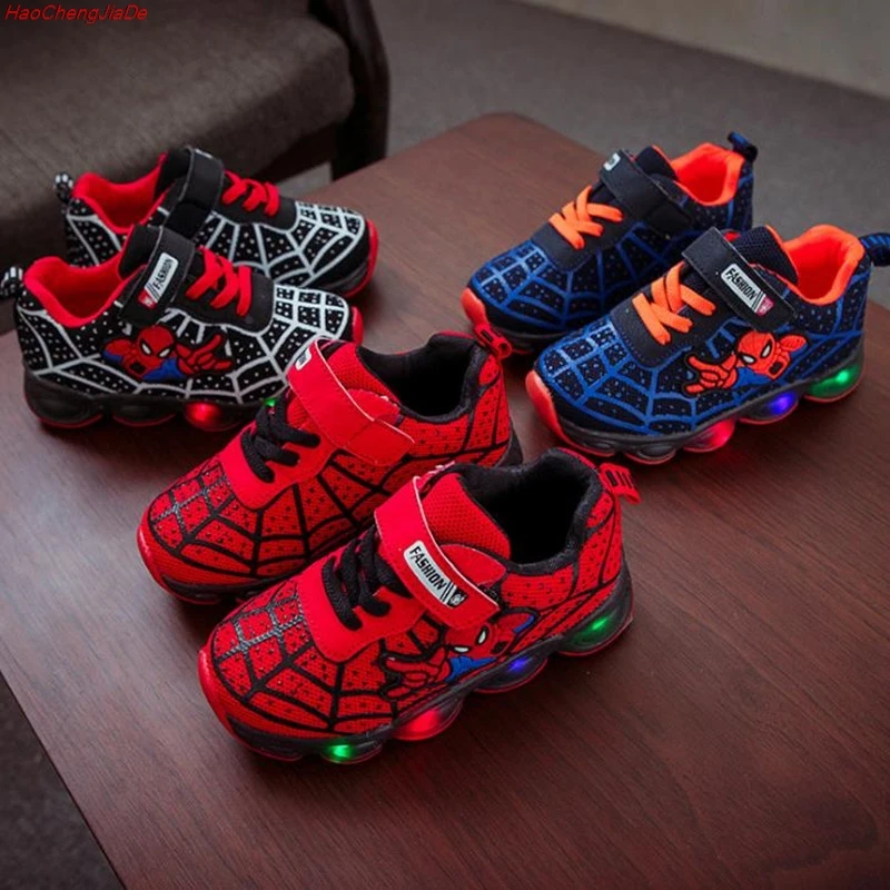 Product Name: HaoChengJiaDe Cartoon chłopców Spider męskie buty dziecko świecące trampki marka Mesh obuwie dla dzieci LED migające buty dla dzieci obuwie casual