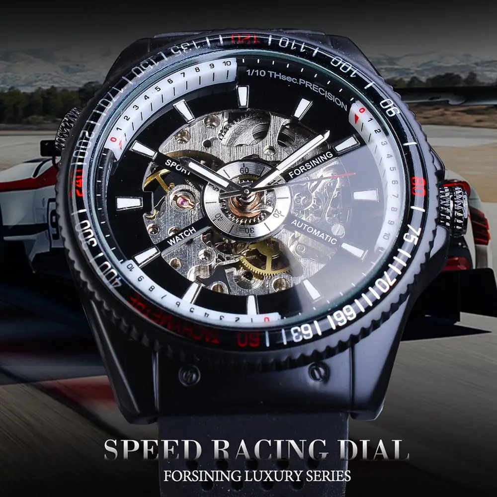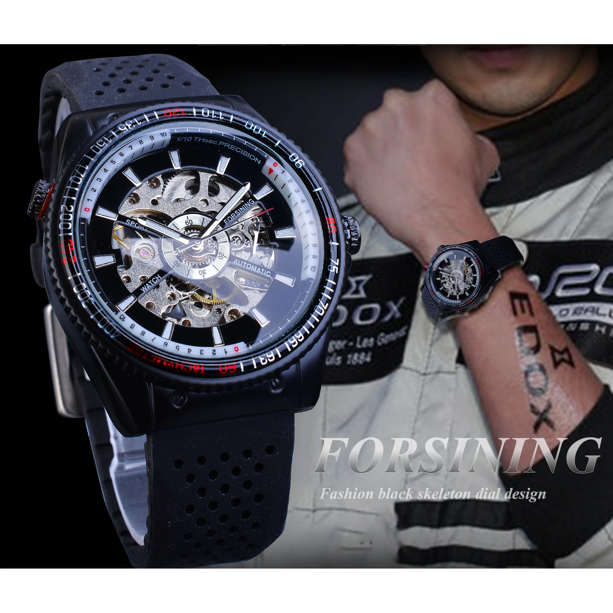 Special Offer Forsining 2016 obracanie Bezel wzór sportowy pasek silikonowy mężczyźni zegarki Top marka luksusowe automatyczne czarny moda Casual zegarek zegar Discount 33% Today!