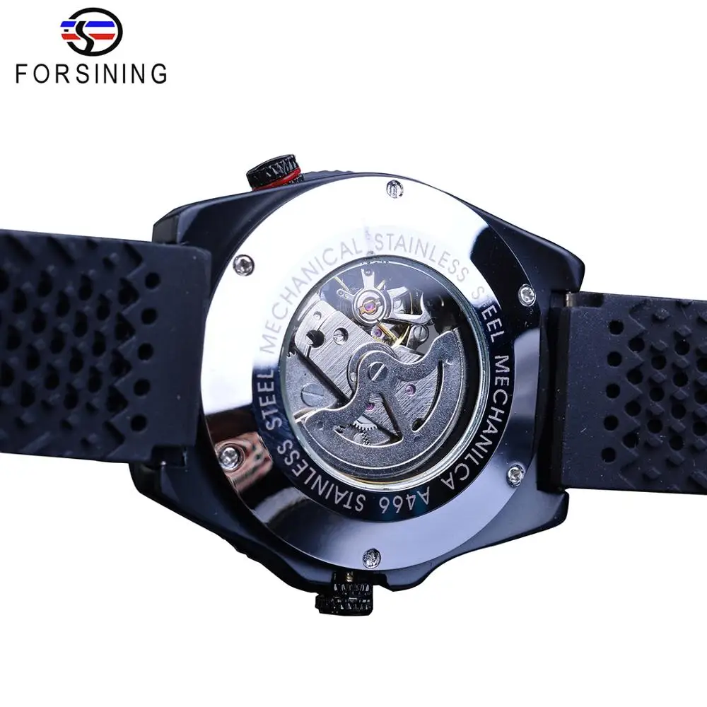 Product Name: Forsining 2016 obracanie Bezel wzór sportowy pasek silikonowy mężczyźni zegarki Top marka luksusowe automatyczne czarny moda Casual zegarek zegar