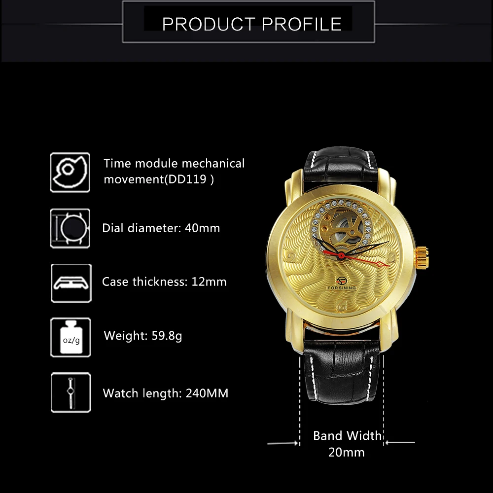 Product Name: FORSINING luksusowe kobiety mężczyźni automatyczne zegarki mechaniczne Iced Out szkielet Dial raster serii zegar mody kochanka zegarek