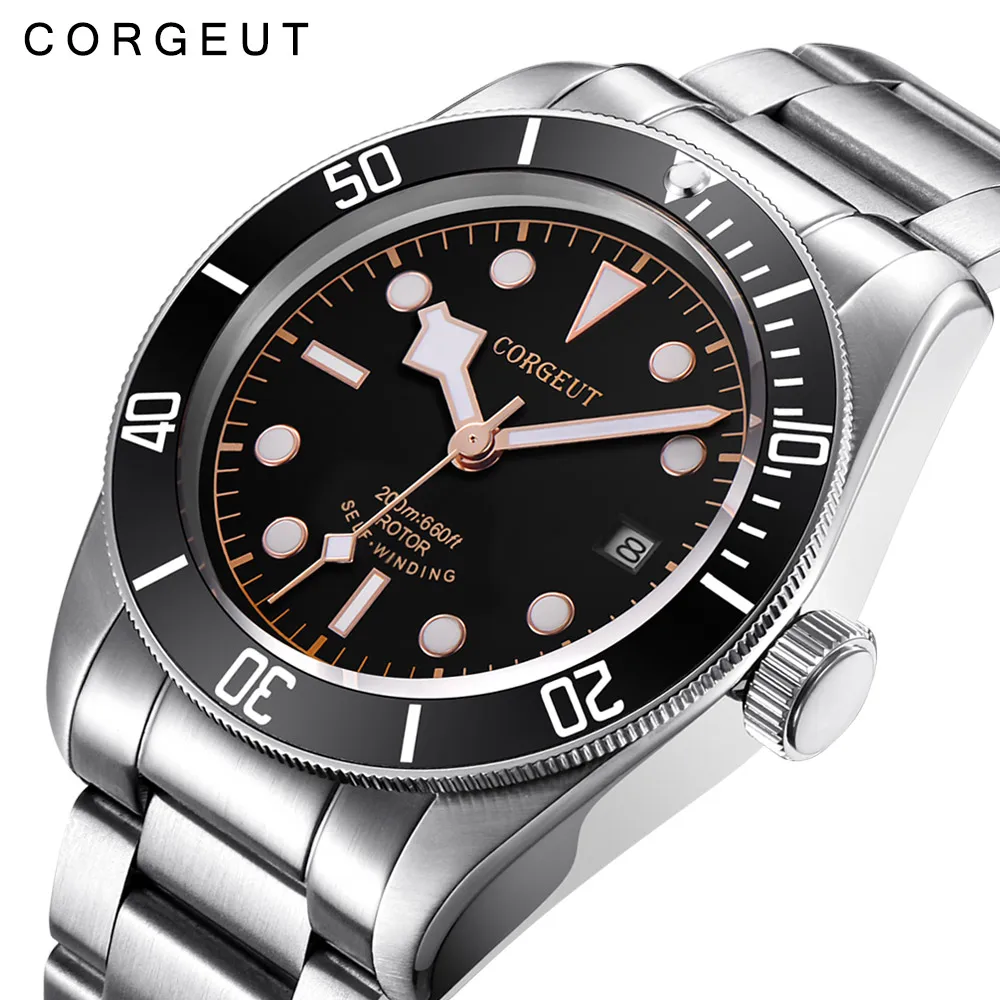 Special Offer Corgeut luksusowej marki Schwarz Bay mężczyźni automatyczny zegarek mechaniczny wojskowy Sport pływać zegar skórzane mechaniczne zegarki na rękę 2010C Discount 56% Today!