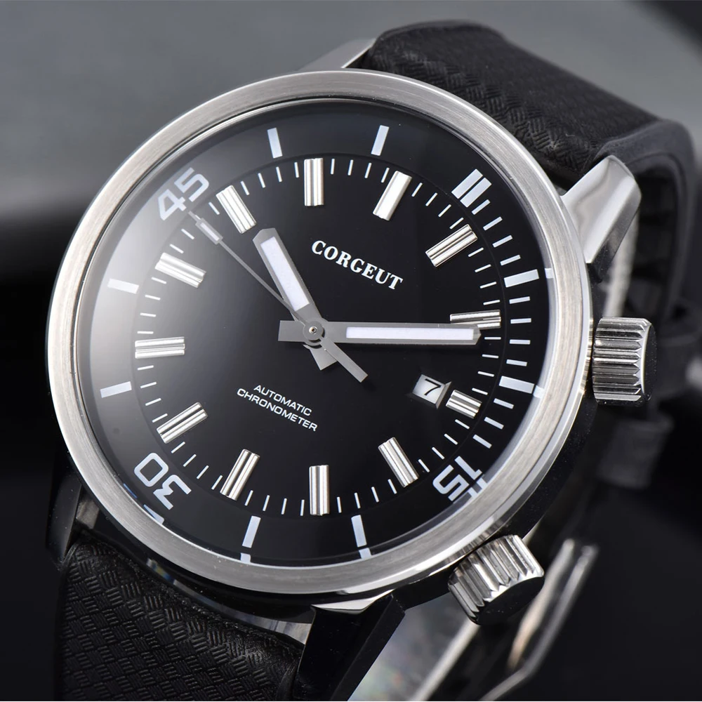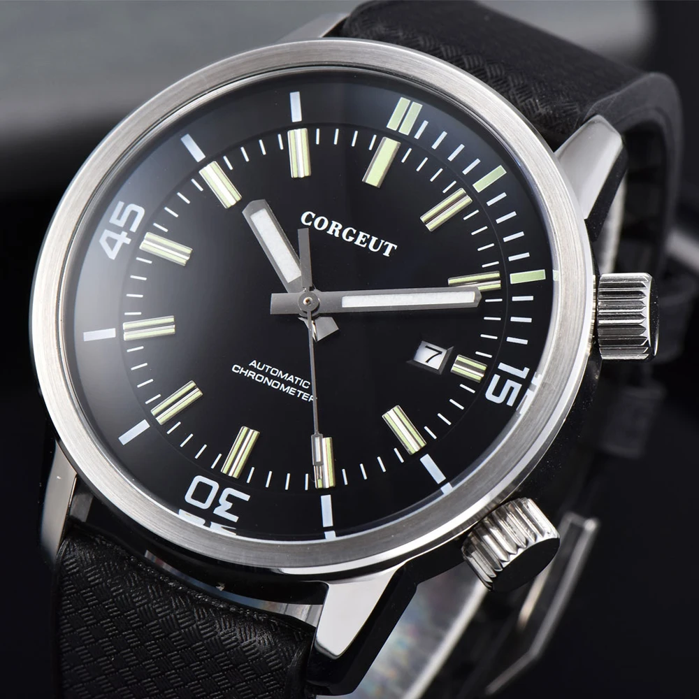 Special Offer Corgeut 44MM męskie luksusowe automatyczne mechaniczne data mężczyźni guma sport wodoodporny zegarek świetlny mewa mężczyzna zegar Discount 63% Today!