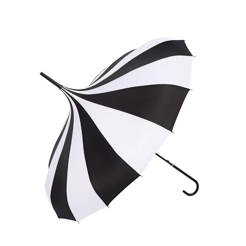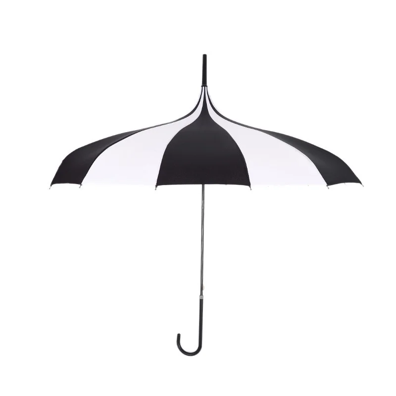 Product Name: 1PC czarno białe parasole kobiety duży duży, długi uchwyt gotycka klasyczna wiatroodporna wieża Pagoda parasol przeciwdeszczowy