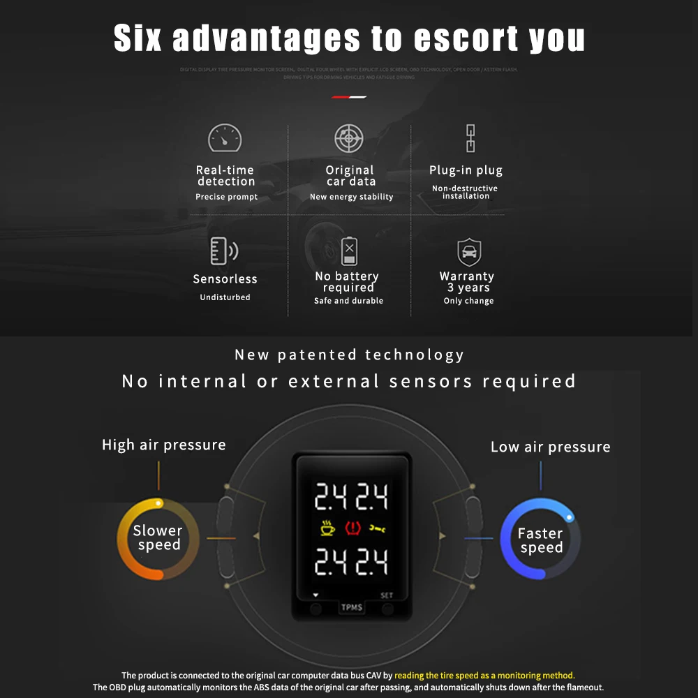 Product Name: Dla Toyota Highlander Vios Corolla RAV4 Yaris Senna Ayr prawo LCD cyfrowy monitorowania ciśnienia w oponach OBD TPMS wbudowany moduł bezpieczeństwa samochodu