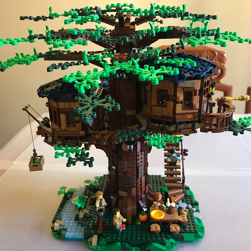 Special Offer Pomysły drzewo model domowy 3117 sztuk liście dwa kolory klocki zestaw klocków Chirstmas prezenty dla kid kompatybilny legoingLYS 21318 Discount 20% Today!