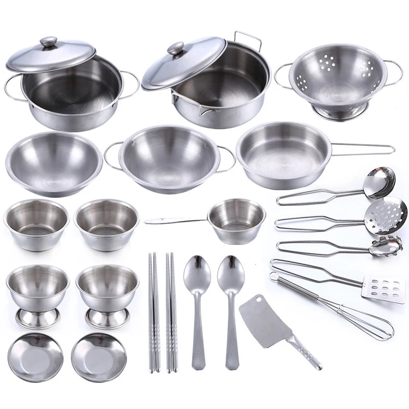 Product Name: 25 sztuk ze stali nierdzewnej domek dla dzieci kuchnia zabawki gotowanie naczynia dzieci udawaj zagraj w zestaw kuchenny srebrne figury