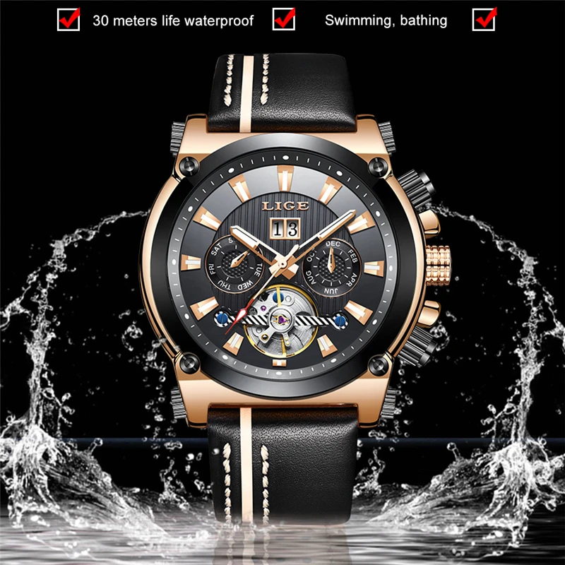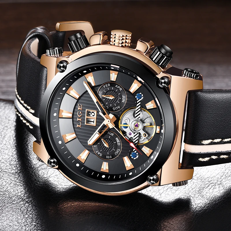 Product Name: LIGE męskie zegarki Top marka luksusowy automatyczny zegarek mechaniczny męski skórzany wodoodporny Sport biznes zegarek Relogio Masculino
