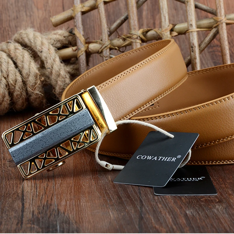 Special Offer COWATHER moda krowa prawdziwej skóry paskiem wokół talii mężczyźni pasy dla mężczyzn automatyczna klamra żółty cinturones hombre oryginalna marka Discount 50% Today!