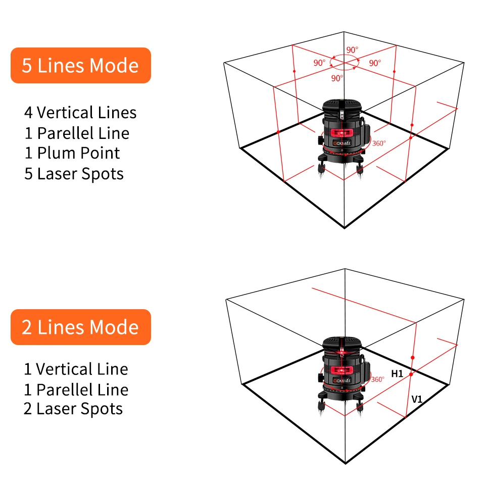 Product Name: GOXAWEE 360 stopni obrotowy 5 linii 6 punktów poziom lasera pionowe i poziome 3D automatyczne samopoziomujący z zewnątrz tryb