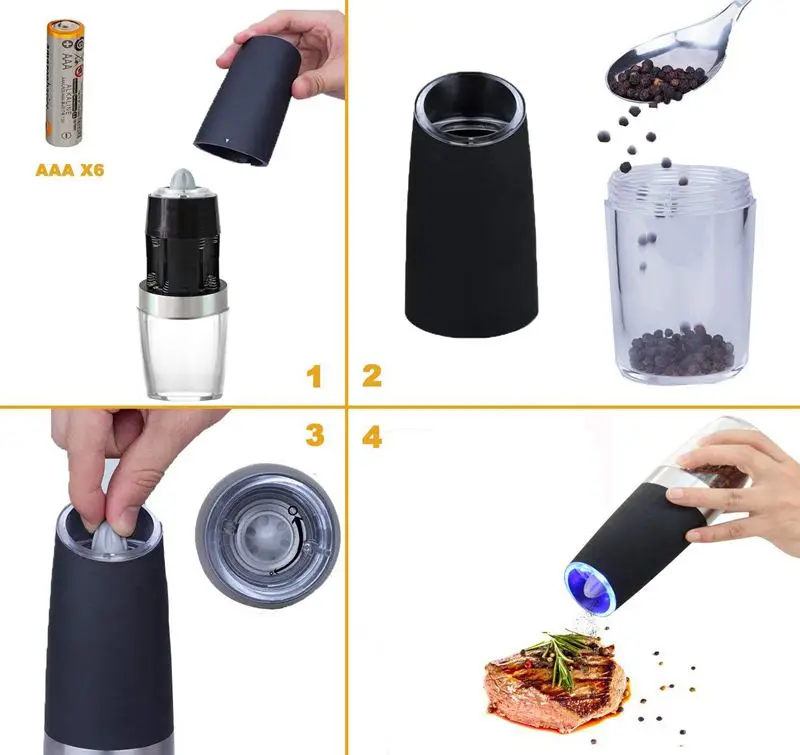 Product Name: Elektryczny młynek do pieprzu lub młynek do soli młyn z regulowanym grubościowym mechanizmem ceramicznym, automatyczna obsługa, zasilany z baterii