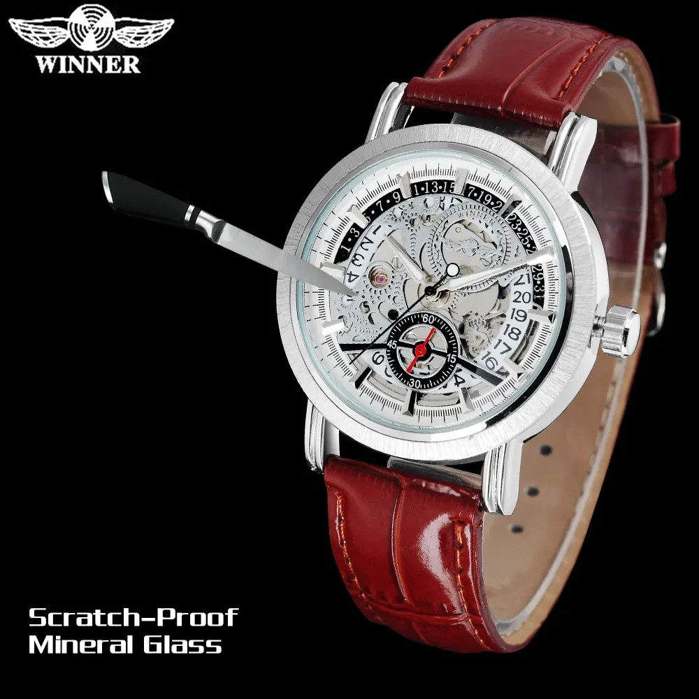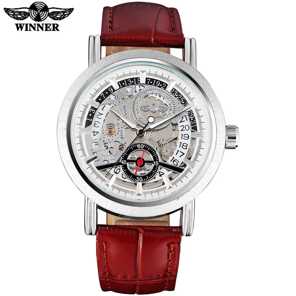 Special Offer Zwycięzca moda marka zegarki mechaniczne dla mężczyzn skórzany pasek casual sport męska automatyczne szkielet zegarki na rękę relogio masculino Discount 40% Today!