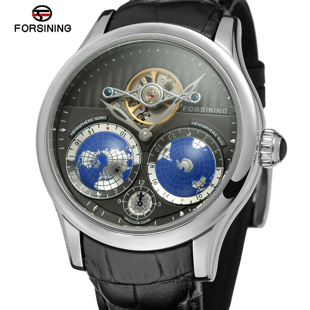 Special Offer FORSINING męska marka luksusowy mechanizm automatyczny opakowanie ze stali nierdzewnej mapa świata Dial Wrist Watch moda stylowy zegarek FSG9413M3 Discount 50% Today!